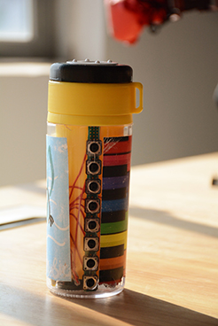 这个作品是一个暖手笔筒,功能是可以通过开关控制,实现加热保暖。