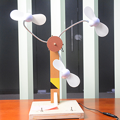 该作品是一个万向多头风扇,旨在增加普通小风扇的趣味性和实用性