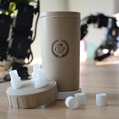 该作品是一个万能把手水杯,旨在让水杯的放置和携带更加方便实用。