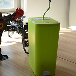 这个作品是一个压缩垃圾筒,灵感来源是在生活中,由于垃圾桶内大多垃圾密度都比较小